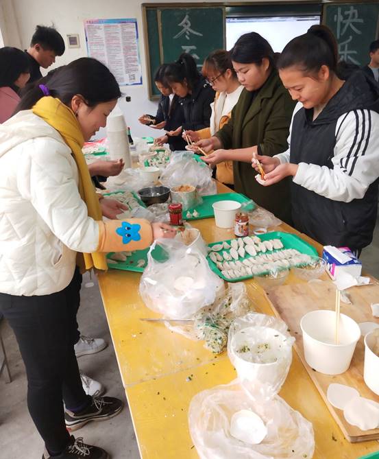 冬至包饺子是我国许多地方的传统习俗,不知不觉已接近年关,一年一度的冬至悄然来临。为了让同学们近距离感受中国传统文化的魅力,并增进同学们之间的友谊,2018年12月22日冬至当天,A级毛片视频国产精品视频组织第十五届学生干部一起“迎冬至,包饺子”,过了一个快乐而温馨的冬至。A级毛片视频国产精品视频团总支书记王换换老师来到活动现场和大家一起包饺子,并送上节日祝福,与学生们一起共享欢乐。活动中大家都热情高涨,各显神通,整个包饺子过程欢声笑语不断,大家齐心协力、精诚合作,一排排独具个性的“饺子”很快就摆满了一个个盘子。热气腾腾的饺子散发的阵阵饺子香,温暖了离家在外的广大学子。
