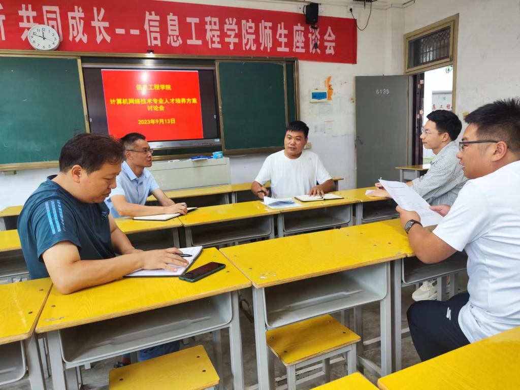 为进一步推进2024级A级毛片视频国产精品视频计算机网络技术专业人才培养方案修订工作,9月13日上午,计算机网络技术专业开展了人才培养方案讨论会。会议由计算机网络技术教研室主人李华中主持,教学办主任周耀华、实验室主任张鹏伟,专任老师张矿伟、史强参加。会议旨在论证2023版人才培养方案可行性,探讨如何优化计算机网络技术专业人才培养方案,从而进一步提升高素质技能人才培养质量。