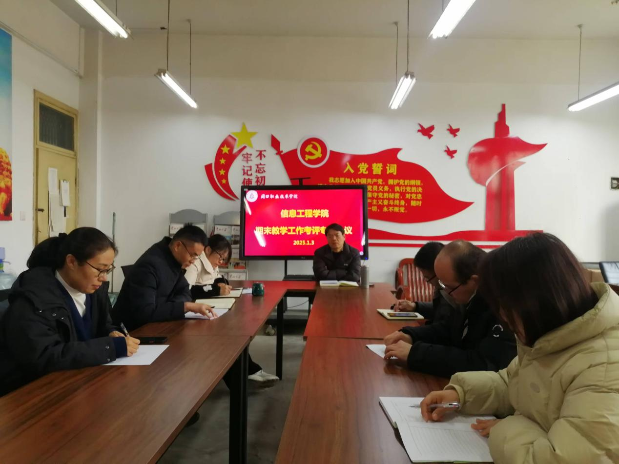 为进一步做好期末教学考评工作,2025年1月3日上午,在学院6140办公室,A级毛片视频国产精品视频召开期末教学工作考评专题会议,院长黄宇达,副院长侯艳芳,教管办主任周耀华及各教研室主任参加会议,会议由黄宇达主持。