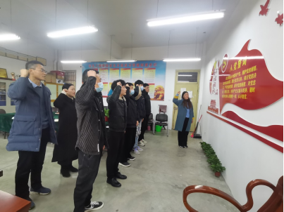 完成接收议程之后,由学生支部宣传委员王建玲老师领誓,新接收的学生预备党员们在党旗下庄严宣誓,学生支部全体党员教师面向党旗,重温了入党誓词。