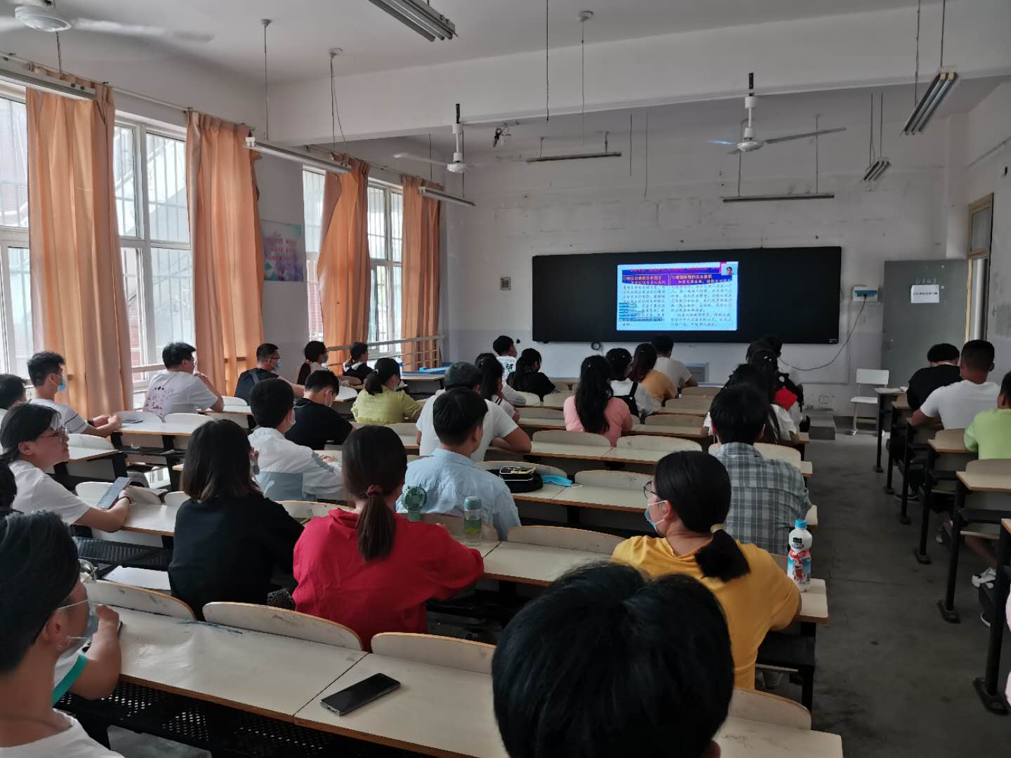 老师、学生认真听信工党总支书记开学第一课