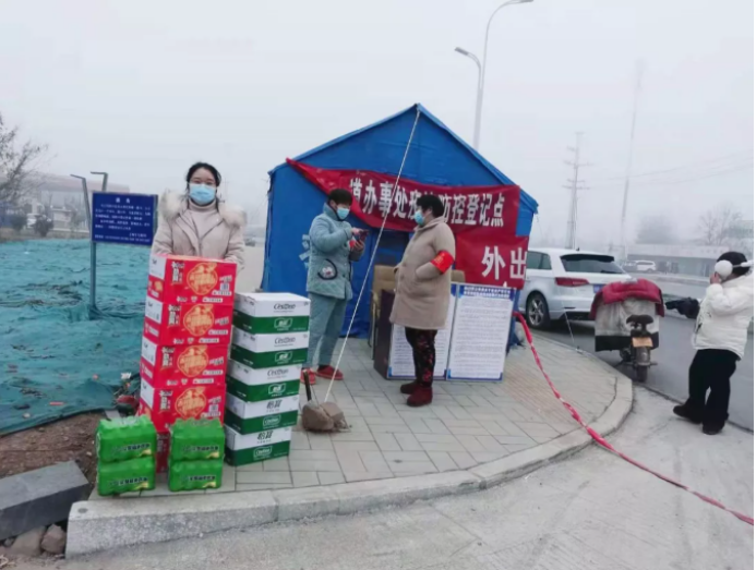 在信阳市固始县蒋集镇栗园村参加信息登记、测体温等疫情防控工作。