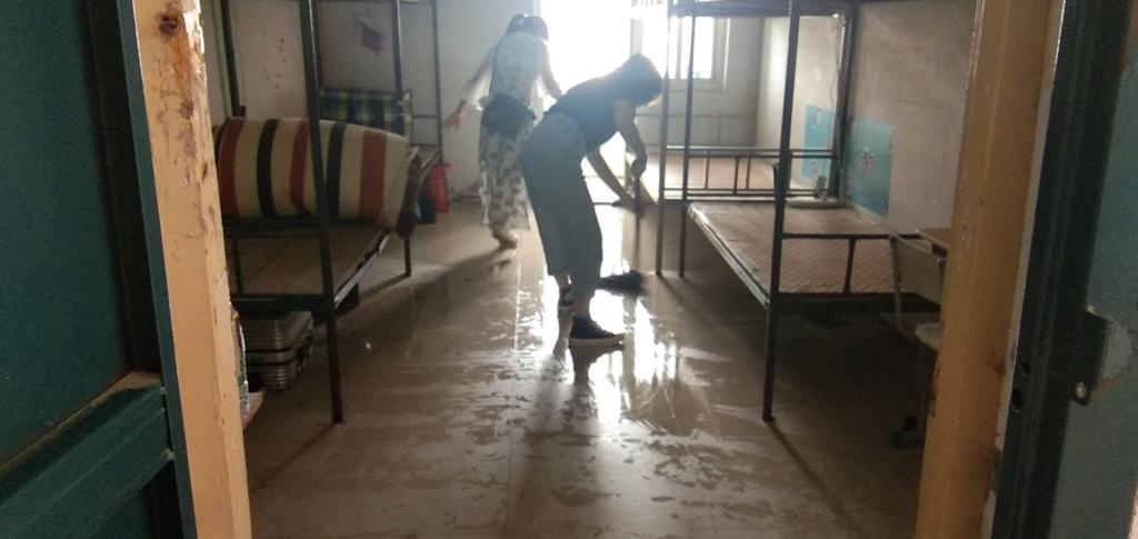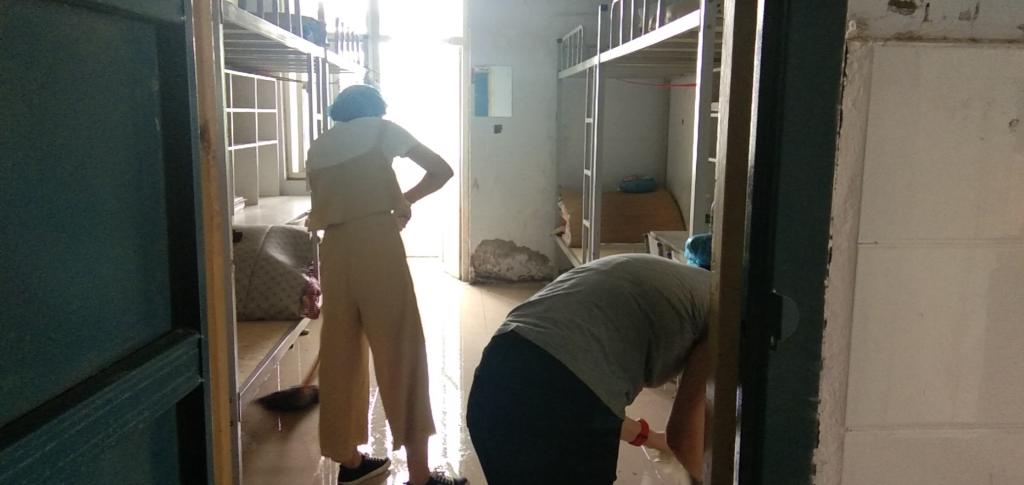 春和大地,大自然焕然一新。2020年注定是一个不平凡的年度,疫情的到来阻挡了学生上学的步伐,但是不能阻隔老师的关爱,在闷热的学生宿舍里,一位位老师,赤膊上阵,热火朝天,在学生宿舍打扫地面,整理桌凳,拖干地面,准备好干净、卫生的安全居住环境,迎接我院学生顺利返校报到。