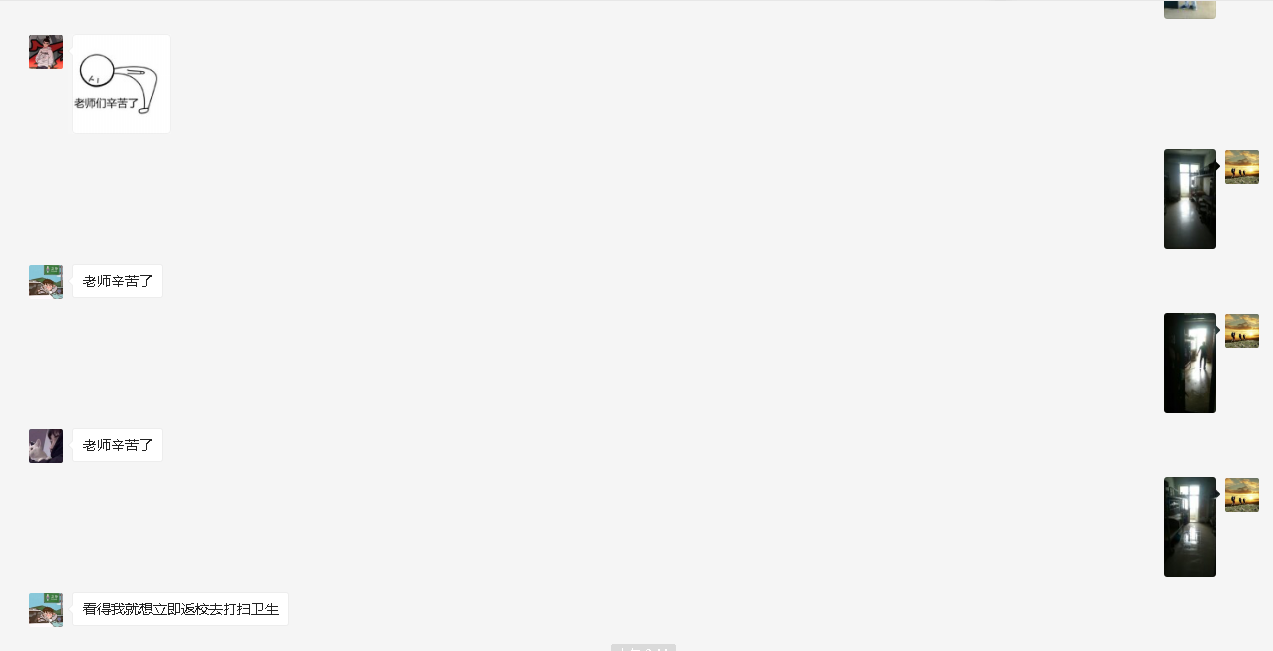 同学们获知老师们在帮助自己整理卫生,深受感动 ,纷纷在微信群里点赞。