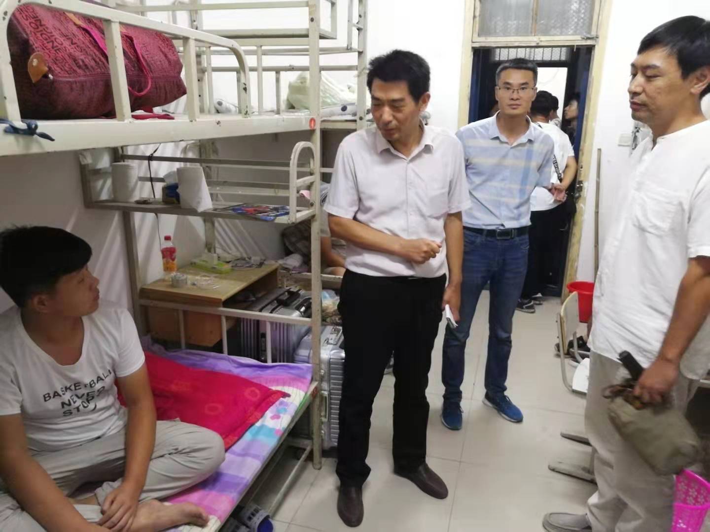 (9月8日晚,信工学院党总支书记李强带领部分辅导员走访新生宿舍)