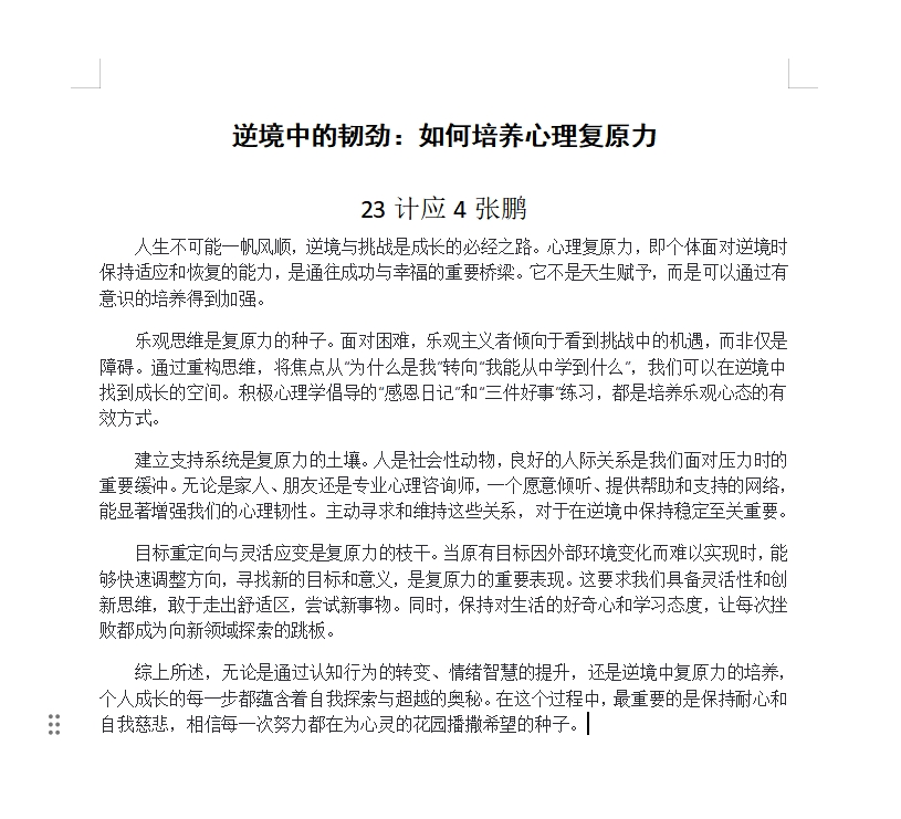经过为期一周的征文,学院共收到近百篇优秀作品。经过评审,最终评选出一等奖3篇、二等奖5篇、三等奖10篇,并给予适当的精神奖励。获奖作品反映了同学们对心理健康的深入思考,展现了他们积极向上、勇于自我探索的精神面貌。