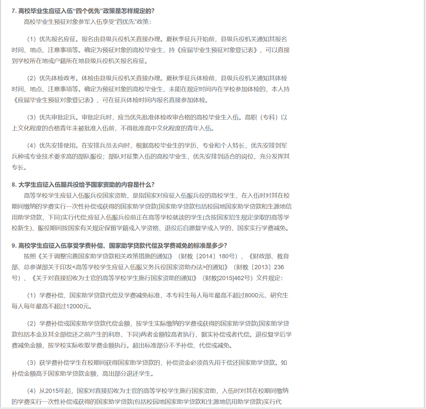 以下是大学生应征入伍政策: