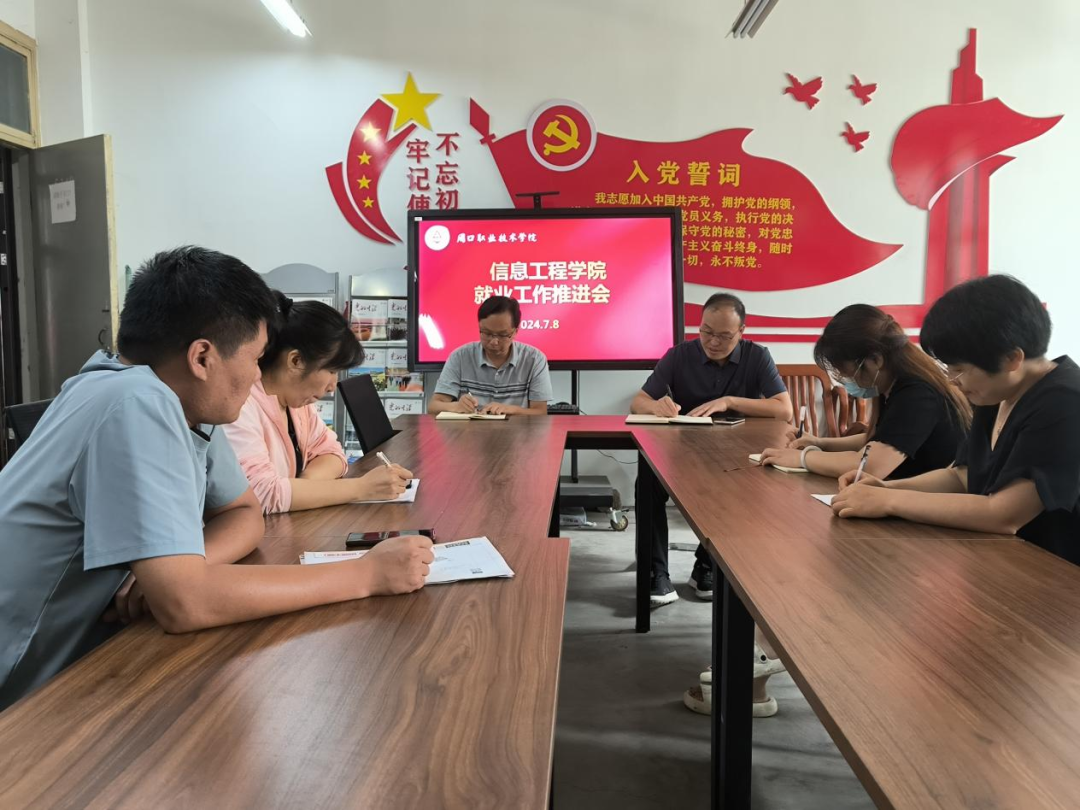 2024年7月8日上午10点, A级毛片视频国产精品视频在6140办公室召开了2024届毕业生就业工作推进会, 党总支书记宋良鹤、学管院长楚书来和21级辅导员参加了此次会议。