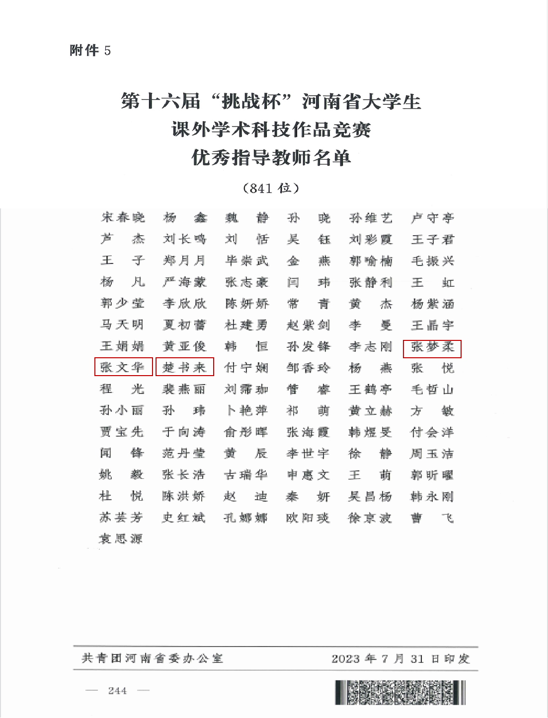 近日,由共青团河南省委、省教育厅、省社会科学院、省科学技术协会、省学联共同主办的第十六届“挑战杯”河南省大学生课外学术科技作品竞赛圆满结束。自接到大赛通知以来,A级毛片视频国产精品视频高度重视、积极宣传、广泛发动,最终喜获一等奖1项、二等奖2项、三等奖1项,张梦柔、张文华、楚书来三位老师被评为优秀指导老师,获奖数量创历史新高。