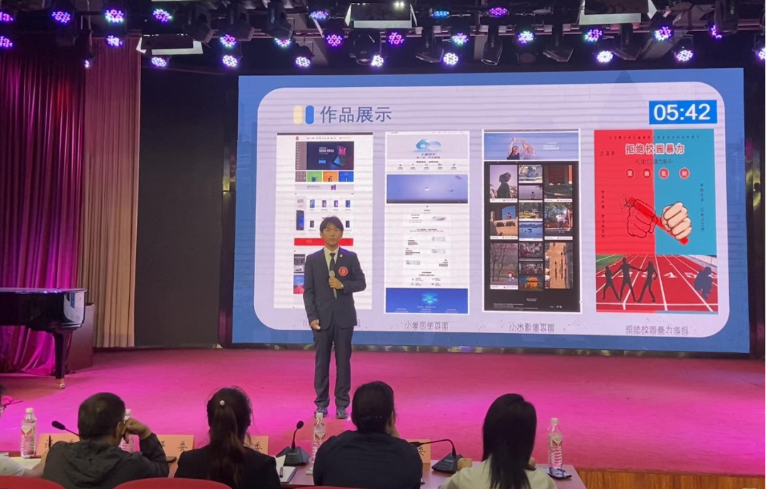 在决赛现场,15名参赛选手依次登台,他们不仅展示了独具匠心的简历设计,更通过精彩的演讲和特长表演,展示了自己的专业技能,实践经验及个人优势。经过激烈的角逐,最终评选出了一等奖3名、二等奖5名、三等奖7名,在此次大学生简历设计大赛中我院学生余璞琪荣获二等奖。