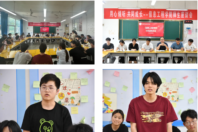 在5月28日下午,A级毛片视频国产精品视频6133教室举办了以“用心倾听 共同成长”为主题的师生座谈会。院长黄宇达、副院长楚书来、侯艳芳,以及综合办主任张梦柔、教学办主任周耀华等领导出席,与23级各班的学生代表进行了深入的交流。